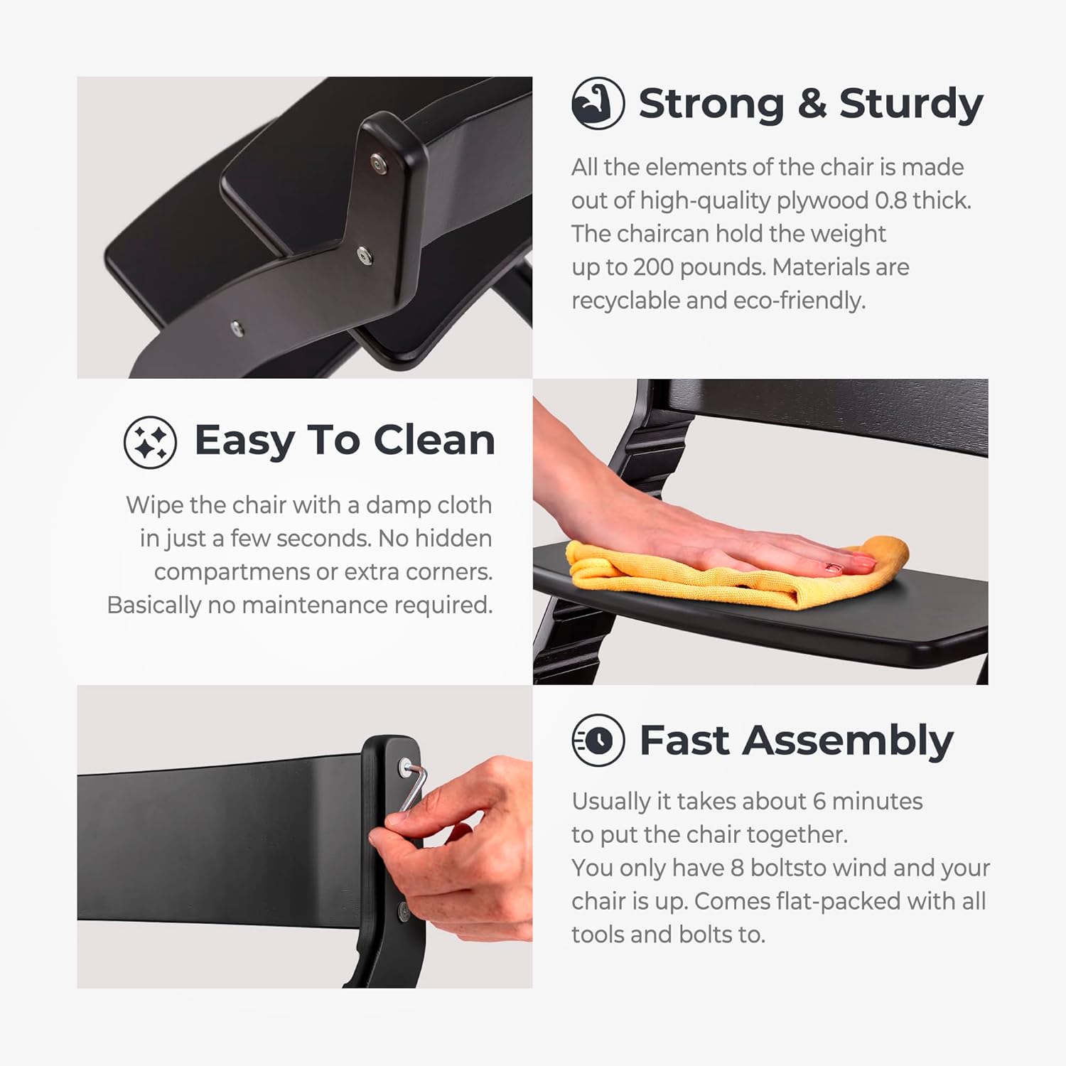 FORNEL Modern Black Wooden High Chair | The Adjustable Grow-with-Me Chair, A Sleek Alternative to Stokke | Perfect for Minimalist & Industrial Kitchens