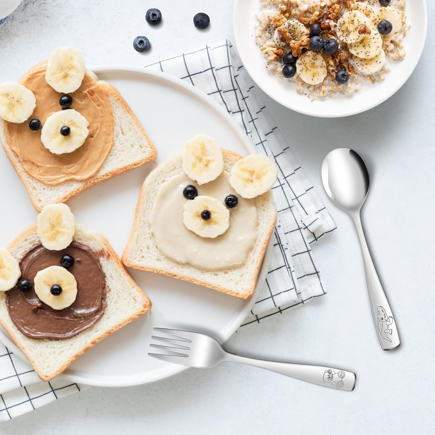 - CUTE & STURDY TODDLER SILVERWARE SET: This children's cutlery set contains 5 cartoon crocodile children's spoons and 5 cartoon bear children's forks. Enough for daily use and replacement, perfect for little people, great for kids lunches and various meals of toddlers, and built to last.