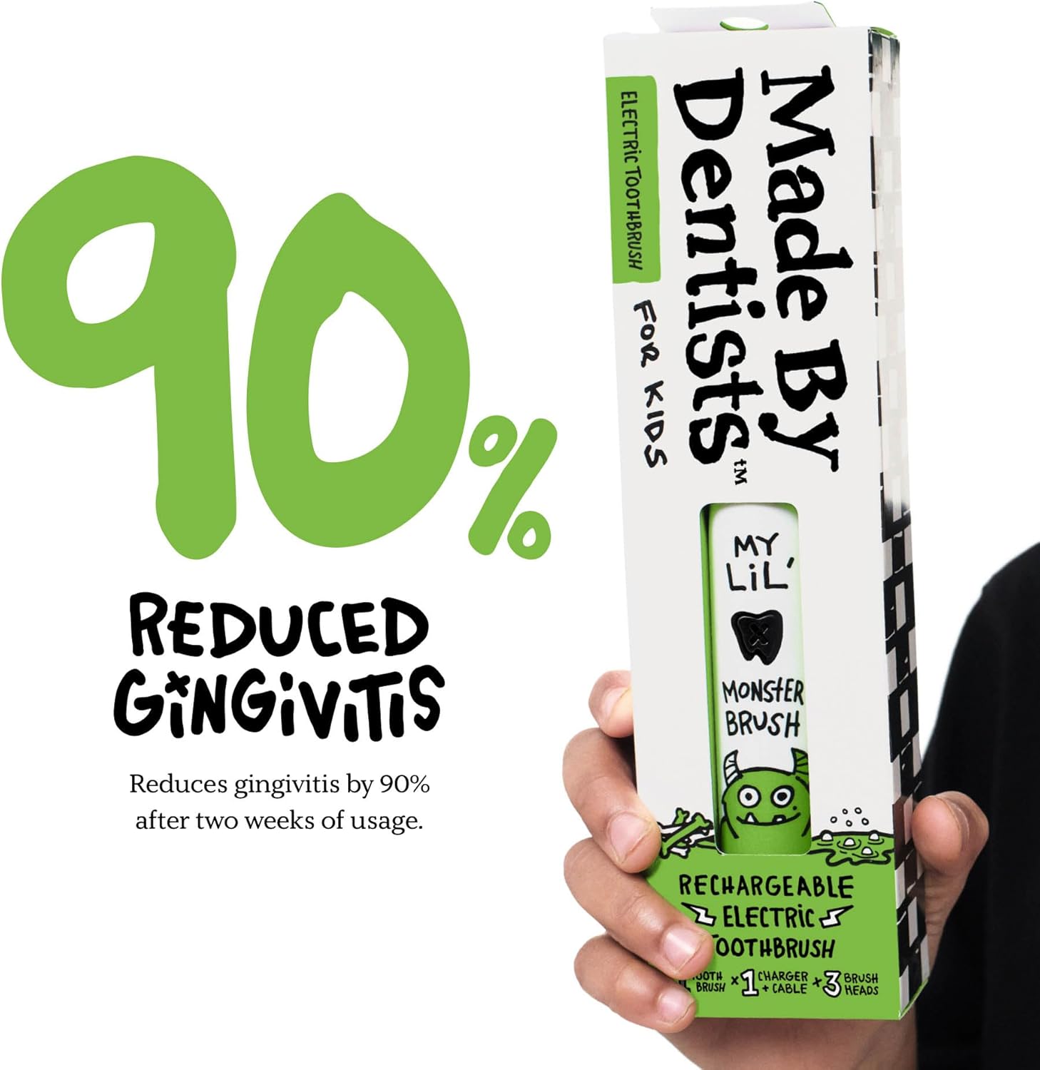 - Monster Theme β Let your little one dive into brushing time with a playful monster-themed best kids electric toothbrush, making oral care fun! Gently cleans little teeth to ensure their bite is extra white.